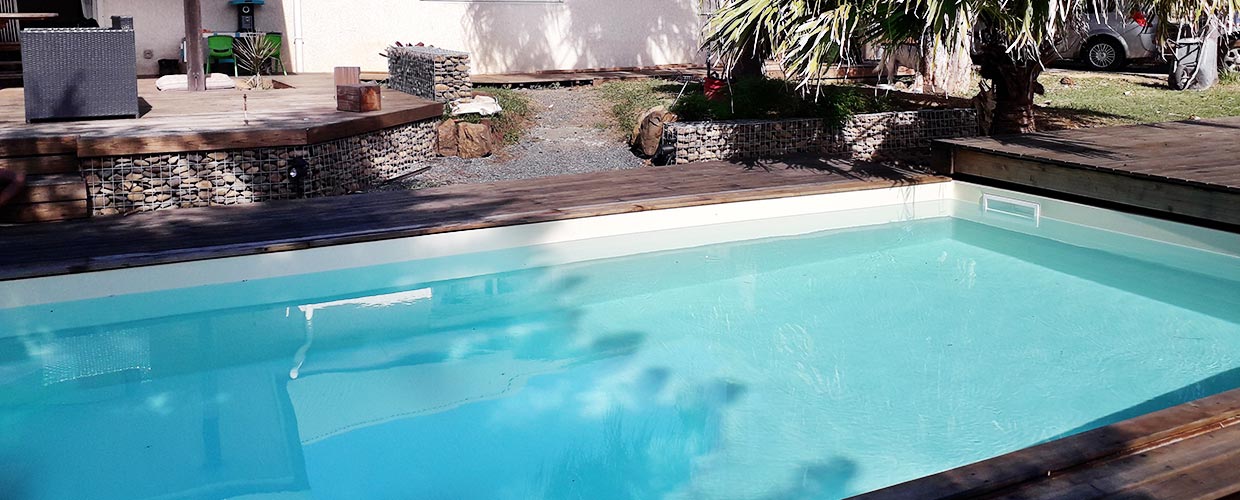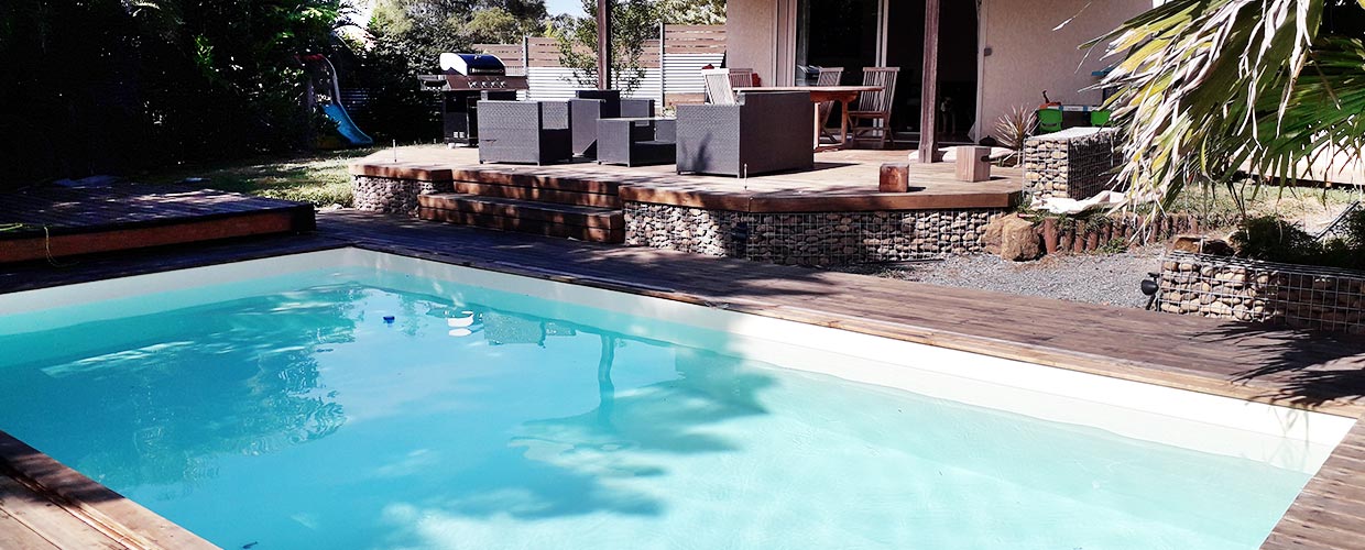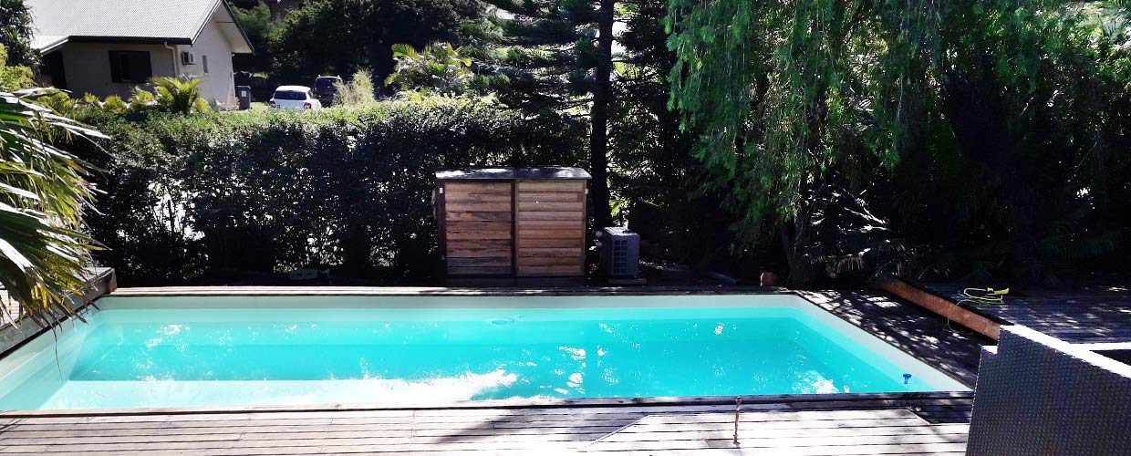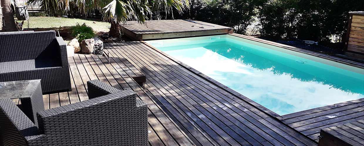 En preuve, la superbe réalisation de l'un de nos clients. Une belle piscine 7 x 3.50 avec une terrasse coulissante Roller-Deck Ozeobois.